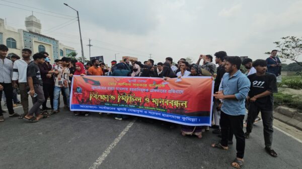 দাউদকান্দিতে গৃহবধূর রহস্যজনক মৃত্যু : মানববন্ধনে গ্রামবাসীর বিচার দাবি