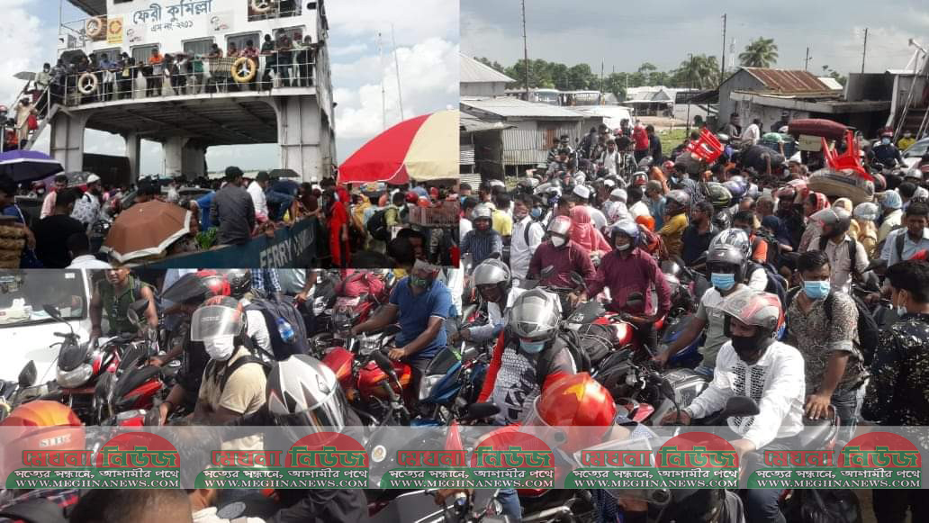 কাঁঠালবাড়ি-শিমুলিয়া ঘাটে ঢাকামুখী যাত্রীদের ভিড়