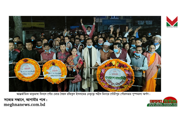 ময়মনসিংহের গৌরীপুরে আন্তর্জাতিক মাতৃভাষা দিবস উদযাপন উপলক্ষে রোববার প্রথম প্রহরে উপজেলার কেন্দ্রীয় শহীদ মিনারে গৌরীপুর পৌরসভার নব-নির্বাচিত মেয়র ও পৌর আওয়ামীলীগের সভাপতি সৈয়দ রফিকুল ইসলামের নেতৃত্বে পুস্পমাল্য অর্পণ করা হয়। বিস্তারিত পড়ুন...