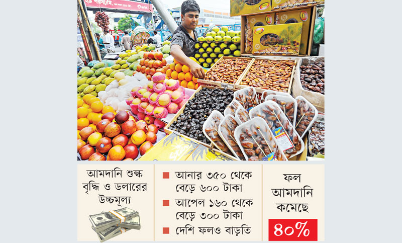 দেশের বাজারে গত কোরবানির ঈদের আগে ১৬০ থেকে ১৮০ টাকায় বিক্রি হওয়া আপেল এখন বিক্রি হচ্ছে ২৮০ থেকে ৩০০ টাকায়। বড় সাইজের আনার কেজি ছিল ৩৫০ থেকে ৪০০ টাকা, সেটি বিস্তারিত পড়ুন...