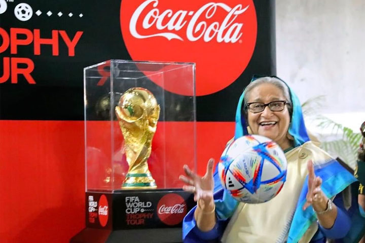 বিশ্বকাপ ট্রফির সাথে আনন্দঘন মুহূর্ত পার করলেন প্রধানমন্ত্রী